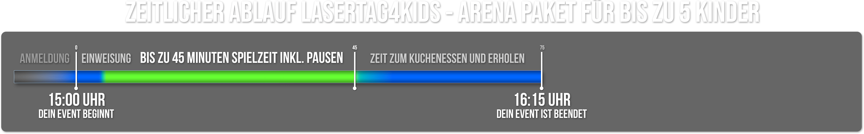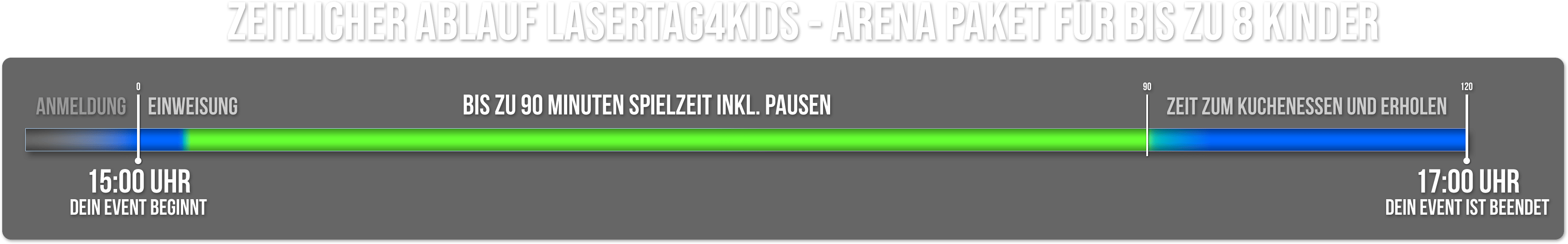 Das Lasertag4Kids-Angebot ist speziell auf Kinder ab 8 Jahren ausgelegt, die noch nicht groß genug sind, um die Ausrüstung des regulären Lasertag-Spiels zu tragen oder mit dem Spielprinzip überfordert sind. Jüngere Kinder können auf Anfrage mitspielen.